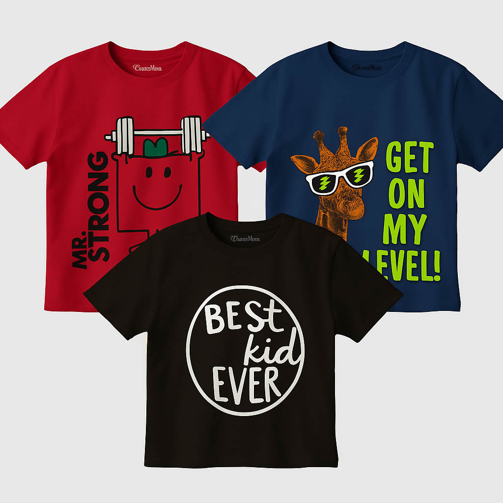 Boys’ 3-Piece T-Shirt Combo – Mr. Strong, Get On My Level & Best Kid Ever | 100% Bio-Wash Cotton