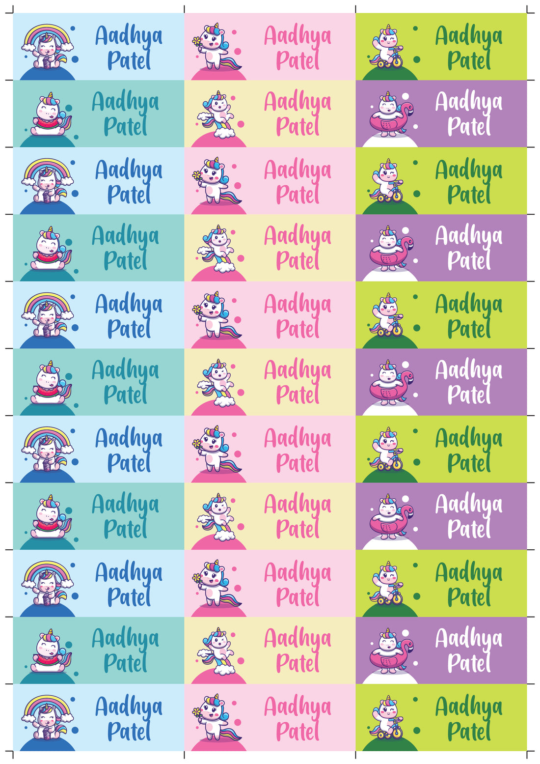 Magical Unicorn themed customised name stickers. Perfect for girls’ books, notebooks, and school supplies. Made...