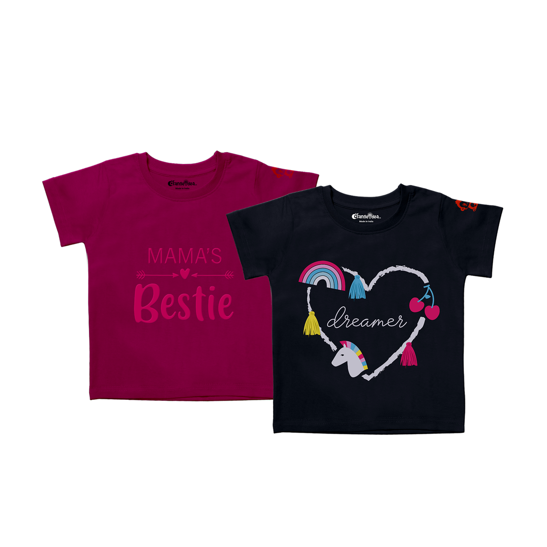Girls’ 100% Bio-Wash Cotton T-Shirt Combo – Mama’s Bestie & Dreamer Prints – Soft & Breathable Kids Tees (Pack of 2)