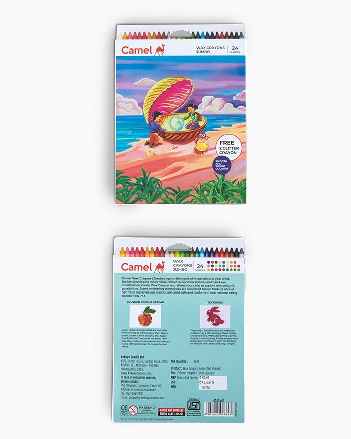 Camel Wax Crayons Assorted pack of 24 shades, Jumbo