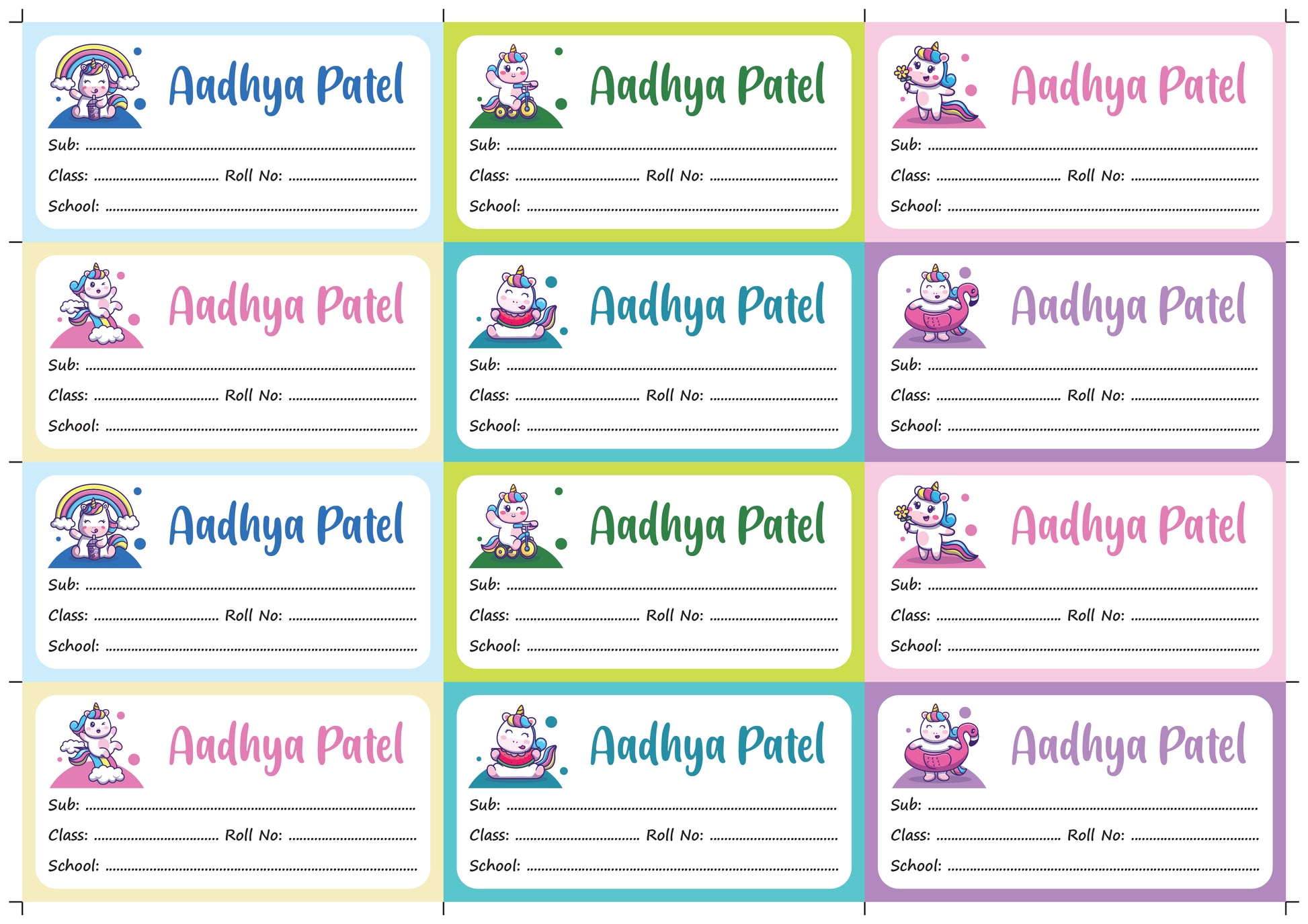 Magical Unicorn themed customised name stickers. Perfect for girls’ books, notebooks, and school supplies.