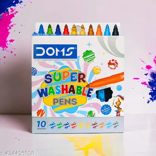 Explore the magic of worry free creativity without permanent stains or marks with DOMS Super Washable Pens which can be easily washed off from various surfaces. Including fabric and skin. Available in 10 Vibrant Shades are suitable for drawing, colouring, labelling and crafts.
