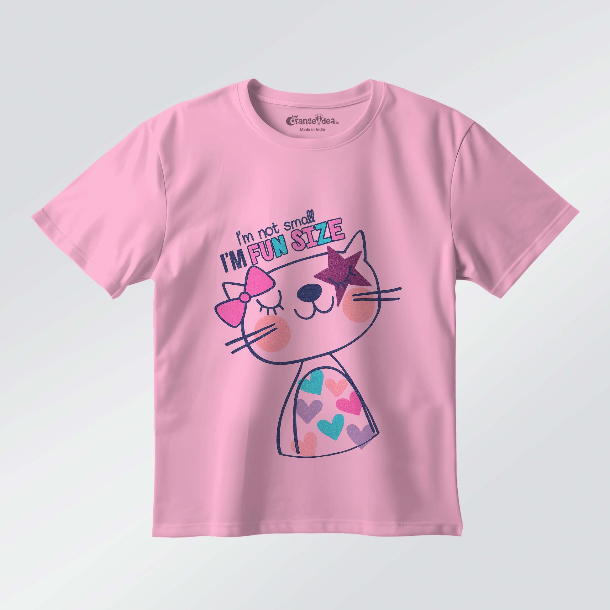 I’m Fun Size Kitty – Girls Half Sleeve T‑Shirt (Pink)