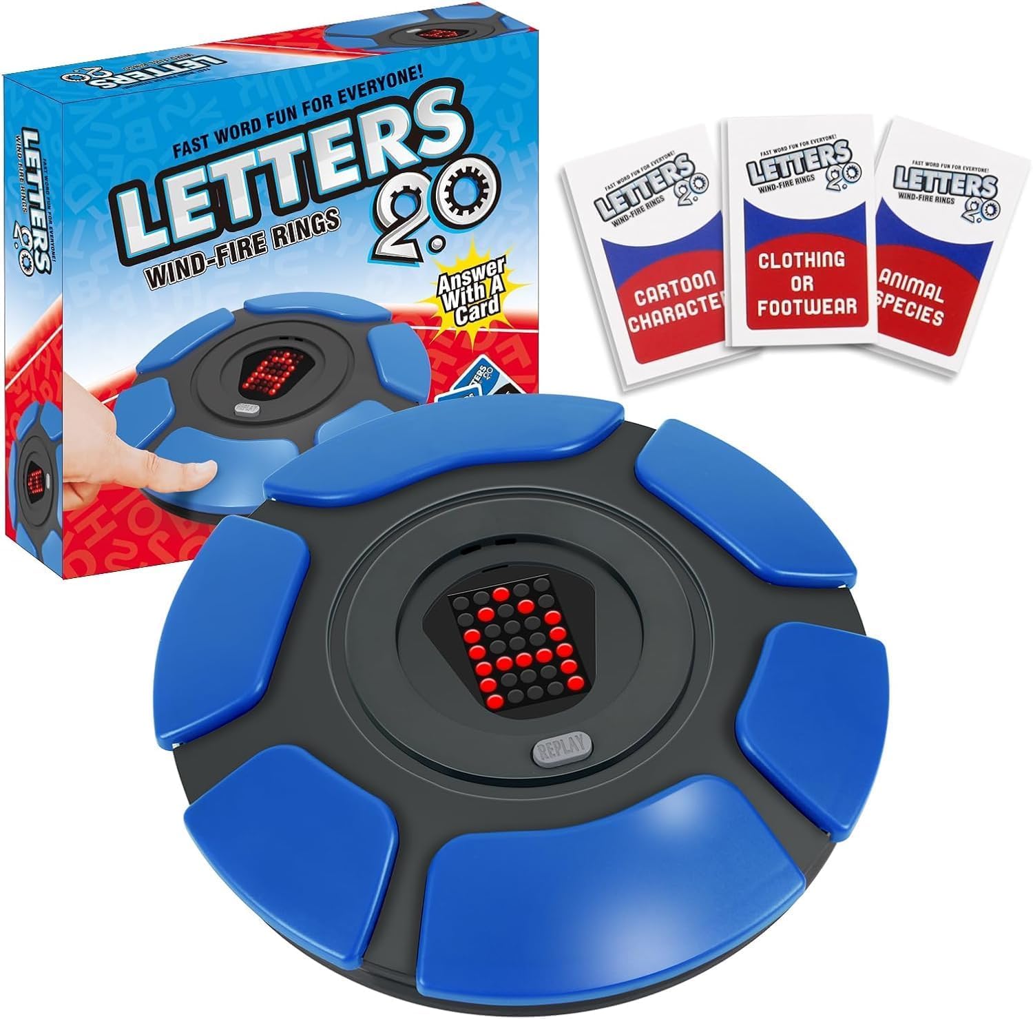 Letters 2.0 Wind-Fire Rings Word Game with LED Display | Fast-Paced Alphabet Party Game