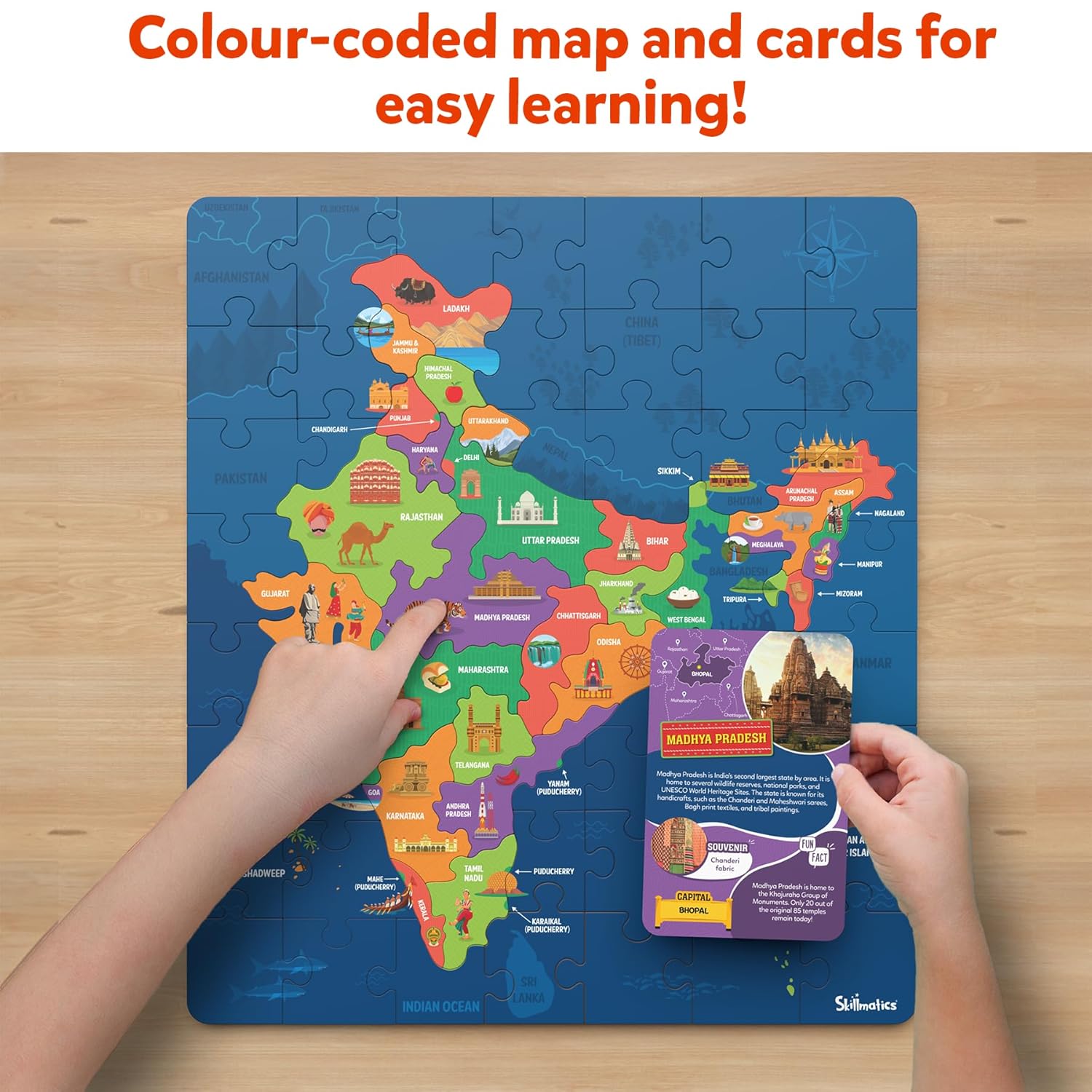 - COLOUR-CODED FOR EASY LEARNING: The color-coded map and cards make it simple for children to locate and learn about India's states and union territories.