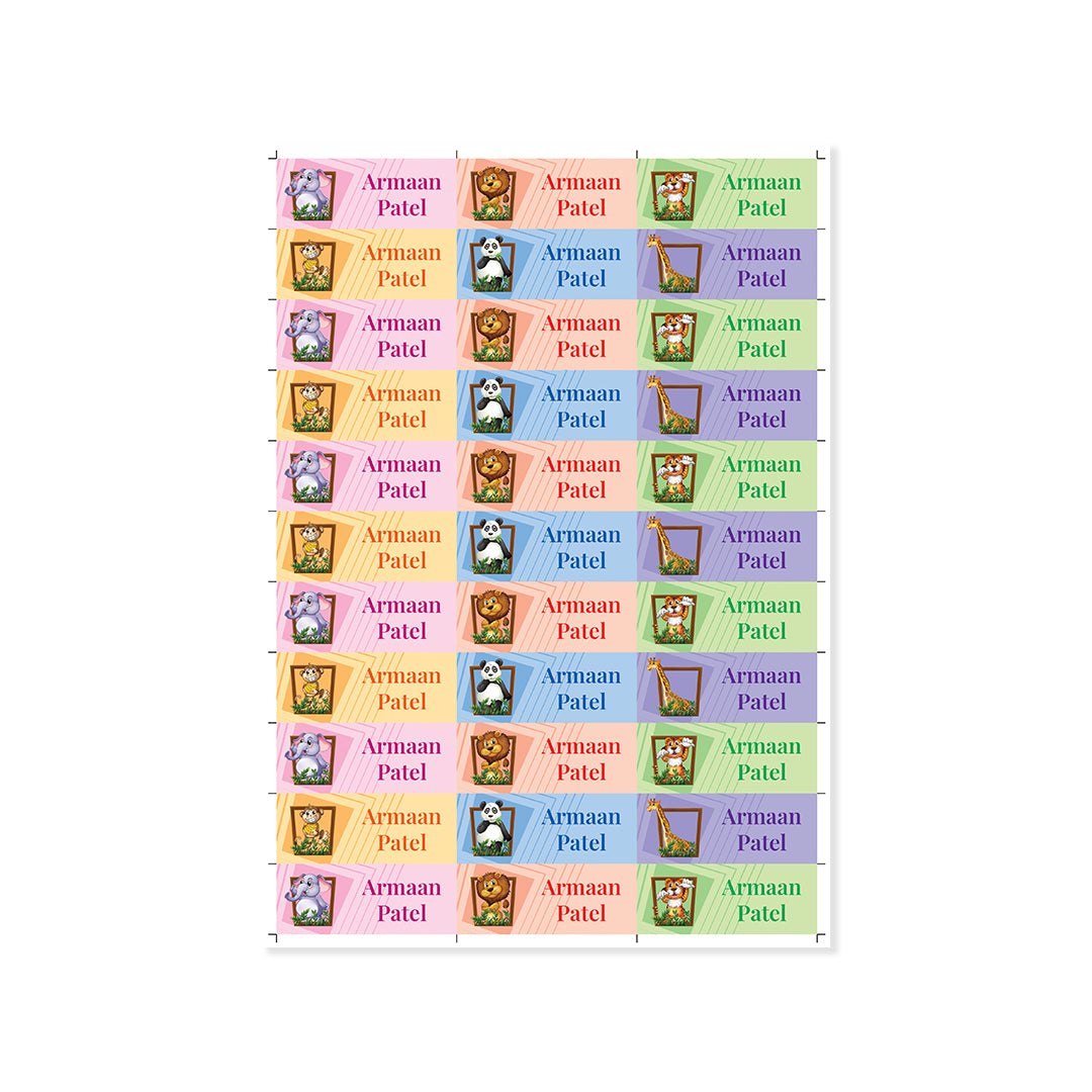 Ultra-durable waterproof name stickers in a cute Animals theme. Perfect for lunchboxes, bottles, books and more.