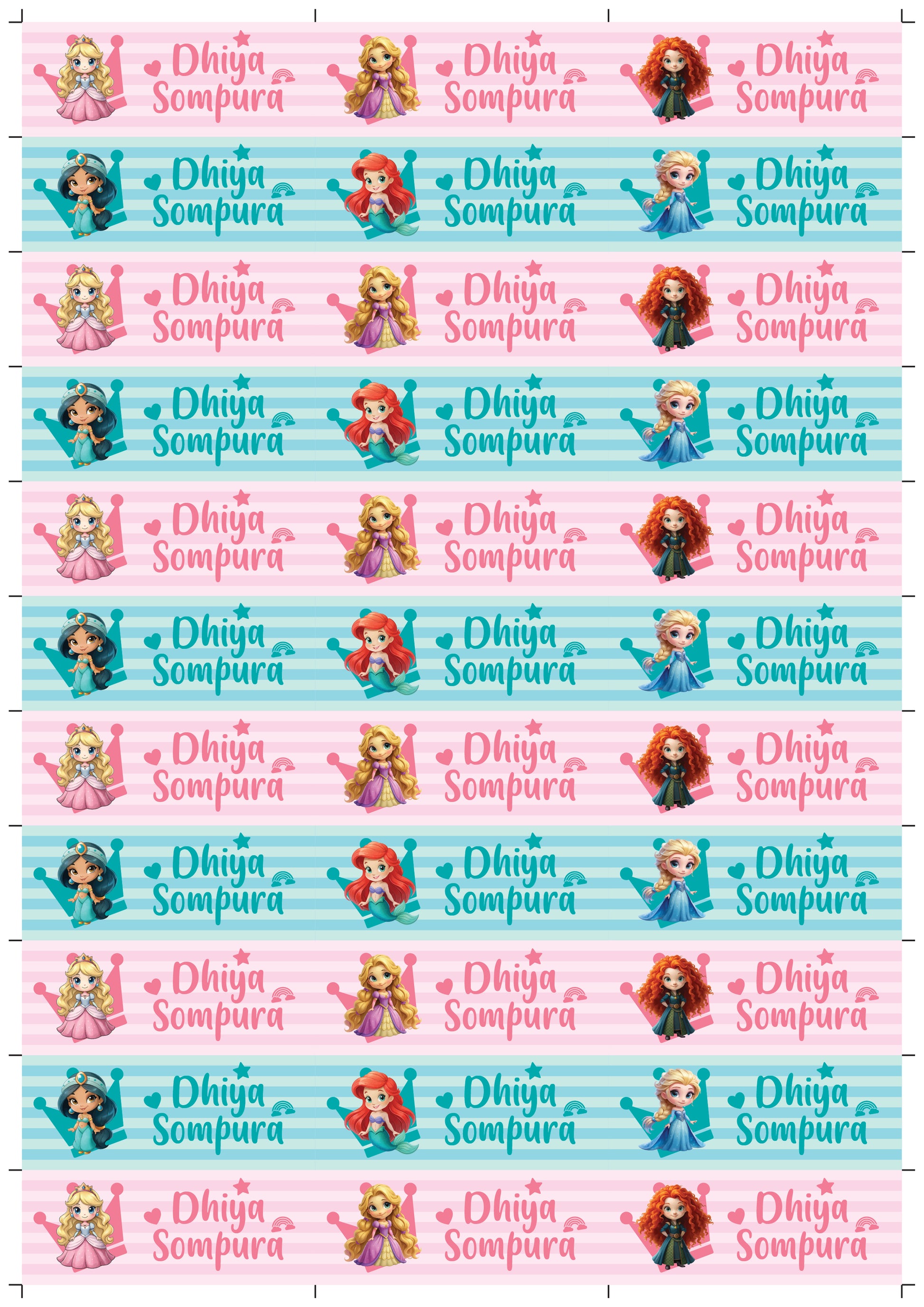 Ultra-durable waterproof name stickers in a charming Princess theme. Perfect for school, books, bottles, and gifts.