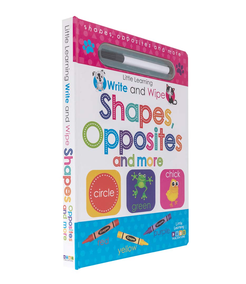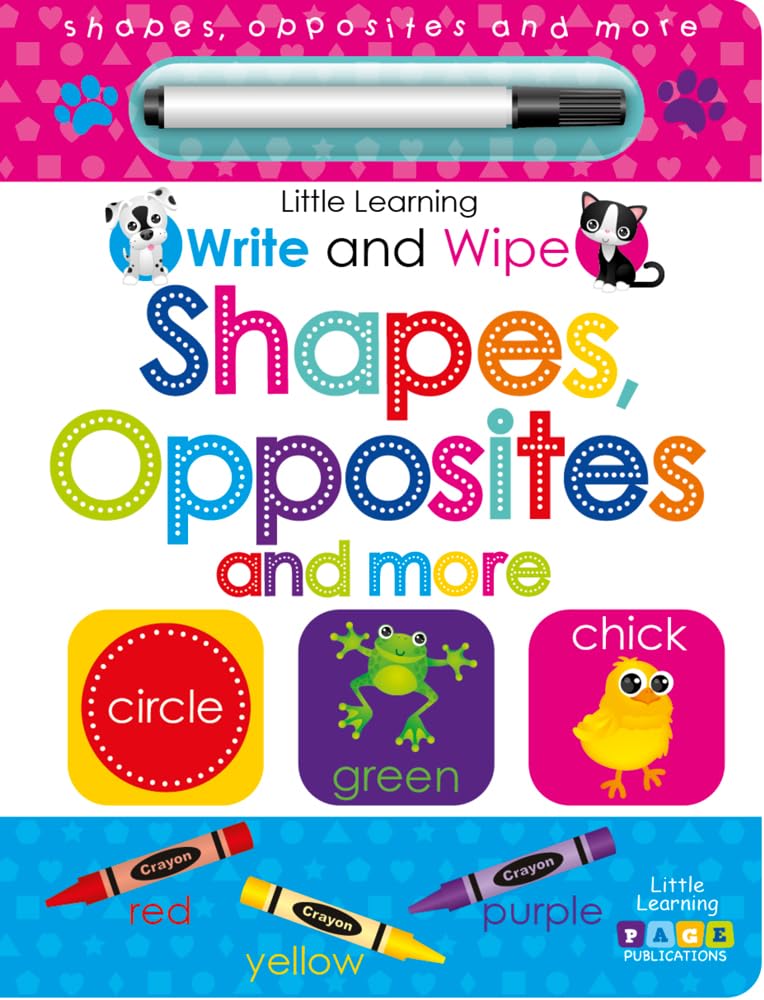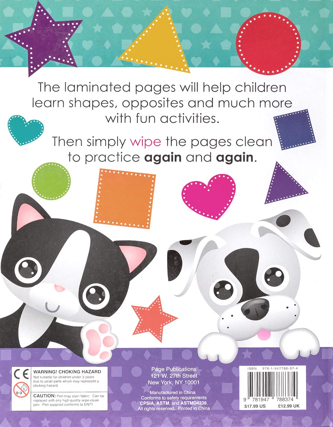 The laminated pages will help children learn shapes, opposites and much more with fun activities. Then simply wipe the pages clean to practice again and again.